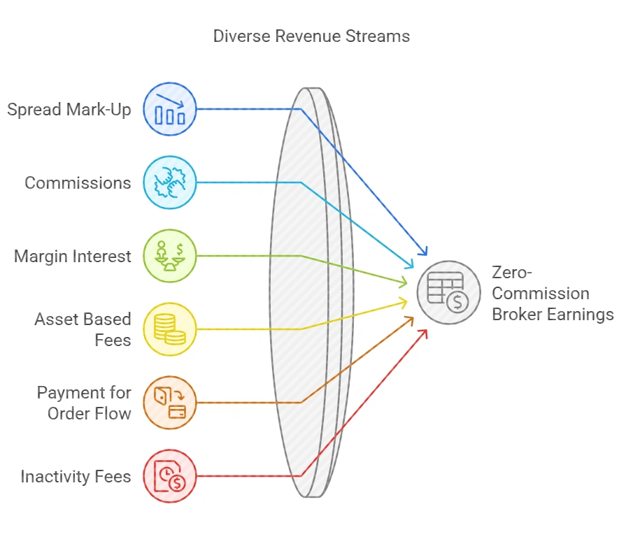 Along with the traditional brokerage fees, trading brokers can have multiple brokerage revenue streams that allow them to introduce zero-commission plans and still make money. Let us understand more about these zero-commission broker earnings in detail: