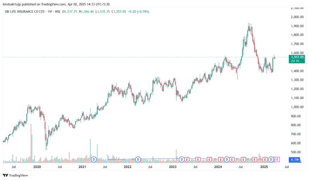 Source: Tradingview, SBI Life Insurance – weekly Chart, showing strong uptrend