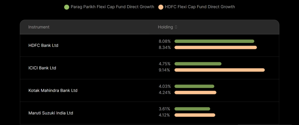 | 1 Finance | 5 | Equity & Hybrid | Shows top overlapping stocks with weights |